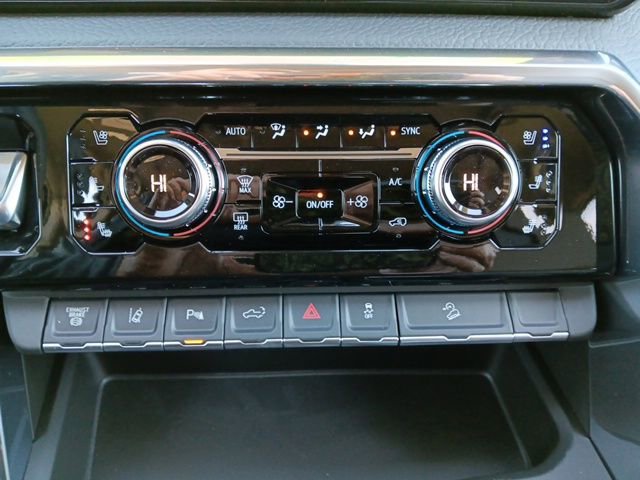 GMC Protection Package (All-Weather Floor Liners and Black Front and Rear Molded Splash Guards), Gooseneck/5th Wheel Prep Package, Snow Plow Prep/Camper Package (220-Amp Alternator), X31 Off-Road Package (Hill Descent Control and Off-Road Suspension), 12-Way Power Driver Seat Adjuster with Lumbar, 12-Way Power Passenger Seat Adjuster with Lumbar, 120-Volt Bed Mounted Power Outlet, 120-Volt Instrument Panel Power Outlet, 2 Charge-Only Rear USB Ports, 2 Charge/Data USB Ports Inside Center Console, 2 USB Ports, 2-Speed Active Transfer Case, 4-Wheel Disc Brakes, 7 Speakers, ABS brakes, Air Conditioning, Alloy wheels, AM/FM radio: SiriusXM with 360L, Apple CarPlay/Android Auto, Auto High-beam Headlights, Auto-dimming door mirrors, Auto-dimming Rear-View mirror, Automatic Emergency Braking, Automatic temperature control, Bed View Camera with Two Trailer Camera Provisions, Bose Premium 7-Speaker Sound System, Brake assist, Brake assist, Buckle to Drive, Bumpers: body-color, Compass, Deep-Tinted Glass, Delay-off headlights, Driver door bin, Driver Memory, Driver vanity mirror, Dual front impact airbags, Dual front side impact airbags, Electric Rear-Window Defogger, Emergency communication system: OnStar, Floor-Mounted Center Console, Following Distance Indicator, Forge Perforated Leather-Appointed Front Seat Trim, Forward Collision Alert, Front anti-roll bar, Front Bucket Seats, Front Center Armrest, Front dual zone A/C, Front fog lights, Front Pedestrian Braking, Front Rain-Sensing Wipers, Front reading lights, Front wheel independent suspension, Fully automatic headlights, Garage door transmitter, Genuine wood dashboard insert, Genuine wood door panel insert, HD Surround Vision, Heated 2nd Row Outboard Seats, Heated door mirrors, Heated Driver and Front Outboard Passenger Seats, Heated front seats, Heated rear seats, Heated steering wheel, Heavy-Duty 80 Amp Battery, Hitch Guidance with Hitch View, Illuminated entry, in-Vehicle Trailering System App, IntelliBeam Automatic High Beam on/Off, Keyless Open and Start, Lane Departure Warning System, LED Cargo Area Lighting, LED Smoked Amber Roof Marker Lamps, Low tire pressure warning, Manual Tilt-Wheel/Telescoping Steering Column, Memory seat, Occupant sensing airbag, OnStar Services Capable, Outside temperature display, Overhead airbag, Overhead console, Panic alarm, Passenger door bin, Passenger vanity mirror, Pickup Box, Polished Exhaust Tip, Power door mirrors, Power driver seat, Power Front Passenger Windows with Express Up/Down, Power passenger seat, Power Sliding Rear Window with Defogger, Power steering, Power Sunroof, Power windows, Power-Retractable Assist Steps, Premium audio system: Premium GMC Infotainment System, Push Button Start, Radio: AM/FM Stereo with Premium GMC Infotainment System, Rain sensing wipers, Rear Cross Traffic Alert, Rear reading lights, Rear seat center armrest, Rear step bumper, Rear Wheelhouse Liners, Rear window defroster, Remote keyless entry, Remote Vehicle Starter System, Safety Alert Seat, Security system, Signature Chrome Denali Grille, SiriusXM with 360L Trial Subscription, Speed control, Speed-sensing steering, Split folding rear seat, Spray-on Pickup Bedliner with GMC Logo, Steering Wheel Audio Controls, Steering wheel mounted audio controls, Tachometer, Telescoping steering wheel, Tilt steering wheel, Traction control, Trailer Cam Provisions and Trailer Viewing Software, Trailer Side Blind Zone Alert, Trip computer, Turn signal indicator mirrors, Ultrasonic Front and Rear Park Assist, Unauthorized Entry Theft-Deterrent System, Universal Home Remote, Variably intermittent wipers, Ventilated Driver and Front Passenger Seats, Ventilated front seats, Vo Price includes: $1