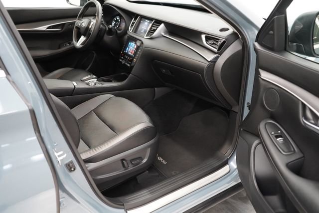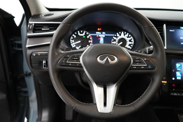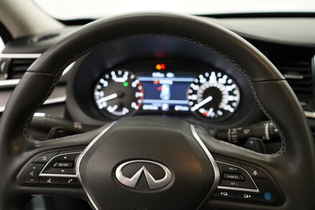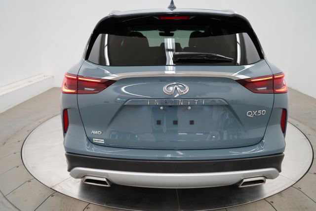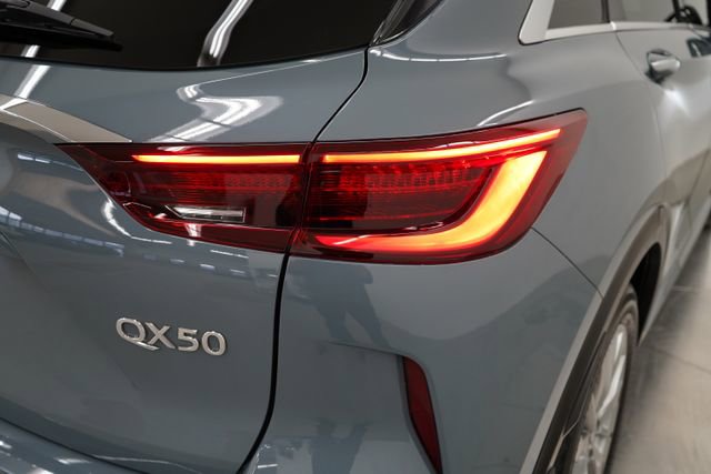 ONE OWNER, CLEAN CARFAX/NO ACCIDENTS REPORTED, BLUETOOTH/CELL PHONE, BACK UP CAMERA, MOONROOF/SUNROOF, LEATHER, ALL WHEEL DRIVE, REMOTE VEHICLE STARTER, QX50 LUXE, 4D Sport Utility, I4, AWD, Slate Gray, Graphite Leather, 6 Speakers, Aluminum Interior Accents, AM/FM radio: SiriusXM, Auto High-beam Headlights, Auto-dimming Rear-View mirror, Automatic temperature control, CD player, Delay-off headlights, Exterior Parking Camera Rear, Floor Mats, Front dual zone A/C, Fully automatic headlights, Garage door transmitter: HomeLink, Heated door mirrors, Heated Front Bucket Seats, Illuminated entry, Leather Shift Knob, Leather steering wheel, Leather-Appointed Seat Trim, Memory seat, Outside temperature display, Power door mirrors, Power driver seat, Power Liftgate, Power moonroof, Power passenger seat, Power windows, Radio data system, Radio: HD Audio System, Rear Parking Sensors, Rear window defroster, Rear window wiper, Speed control, Speed-Sensitive Wipers, Splash Guards (Set of 4), Split folding rear seat, Spoiler, Steering wheel mounted audio controls, Tachometer, Telescoping steering wheel, Tilt steering wheel, Trip computer, Turn signal indicator mirrors, Variably intermittent wipers, Wheels: 19 Silver Painted Aluminum Alloy. 2023 INFINITI QX50 4D Sport Utility LUXE AWD CVT I4 Slate Gray