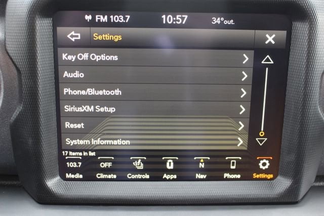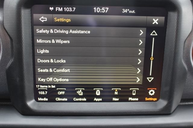 Stay comfortable and connected with features like heated front seats, a heated steering wheel, and the Uconnect 4C Nav system with an 8.4-inch display. Apple CarPlay and Android Auto integration keep you seamlessly connected on the go. The premium cloth seats with sport bolsters provide excellent support and style, while the rear sliding window and freedom panel storage bag add versatility.